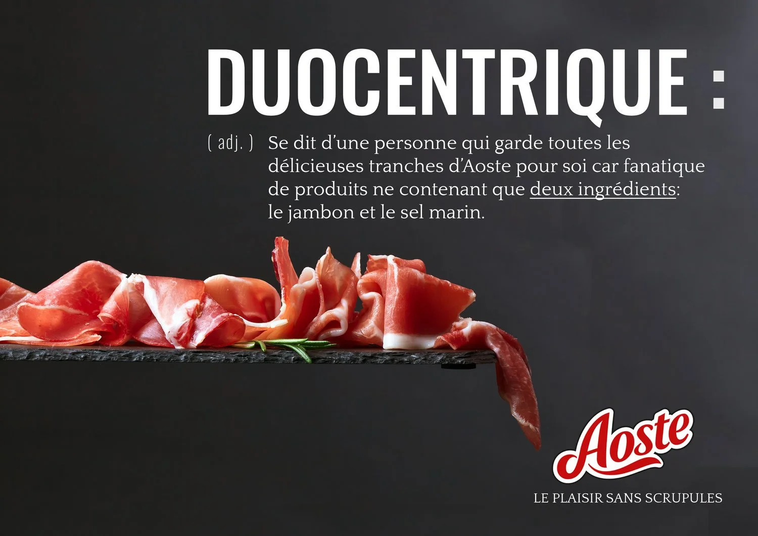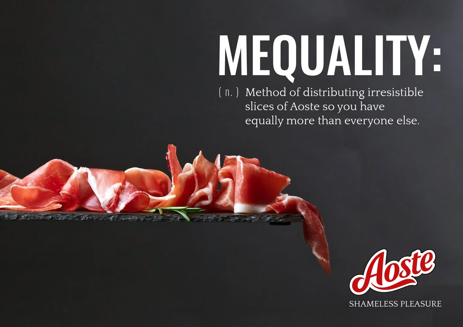 Print campaign for Aoste that created a new vobab for the brand to describe how people feel about sharing.