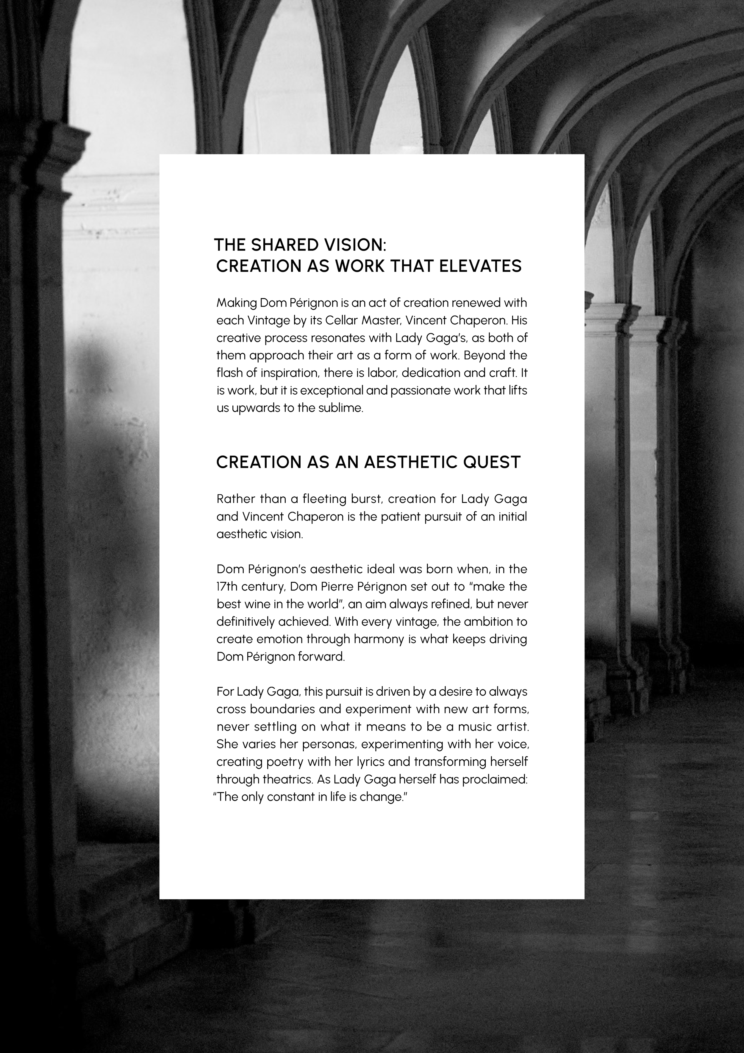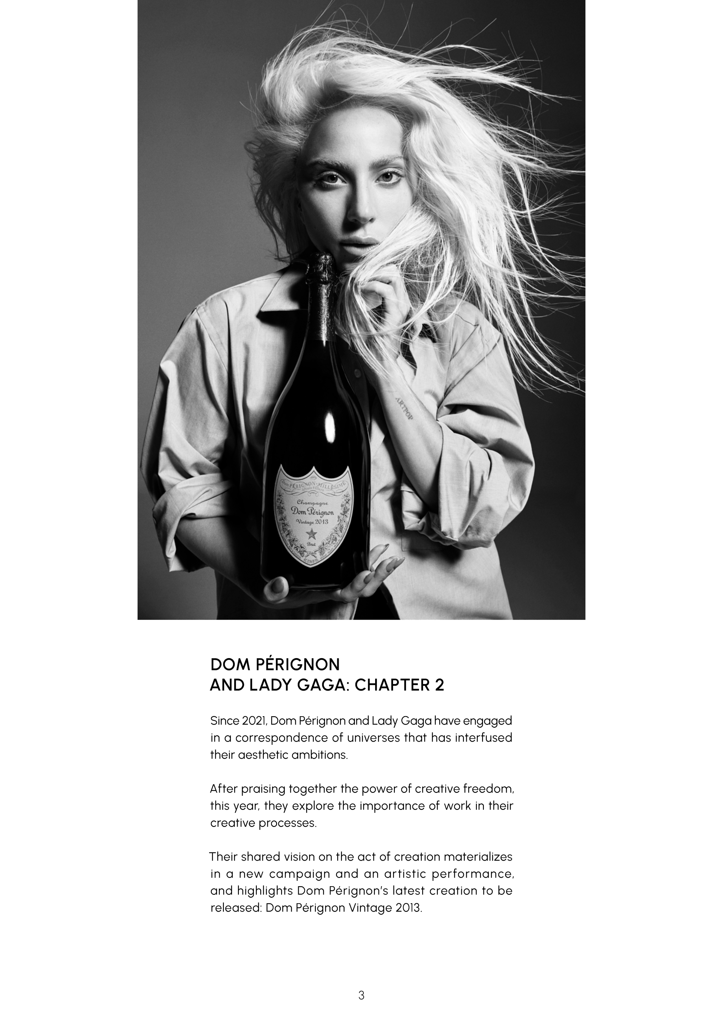 Dom Pérignon X Lady Gaga Press booklet writing for the launch of Lady Gaga’s partnership with Dom Perignon.